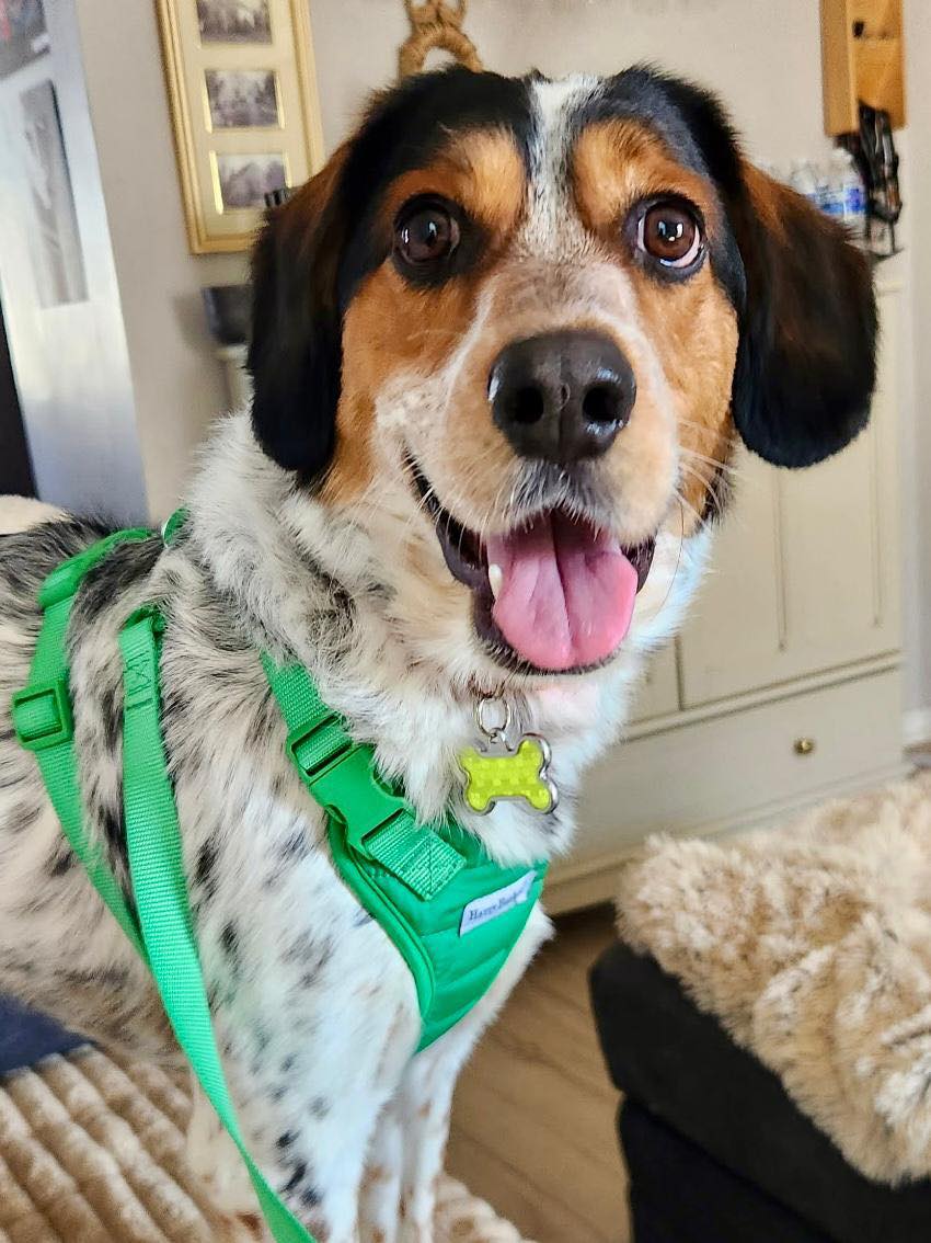 Our handsome Jack is a 1 1/2 year old Coonhound mix who is looking for that special someone to help him continue blossoming. He will flourish in an adult only, fairly calm/quiet household with a patient owner who has lots of time to spend with him while he learns the essentials. We believe him to be a “one person” kind of dog who will most likely do well with another dog.